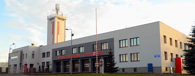 Komenda Miejska Państwowej Straży Pożarnej w Tychach znajduje się przy alei Niepodległości 230.
